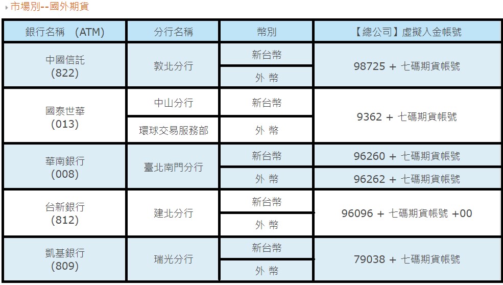 ➣期貨臨櫃開戶(國內、海外期貨、選擇權)