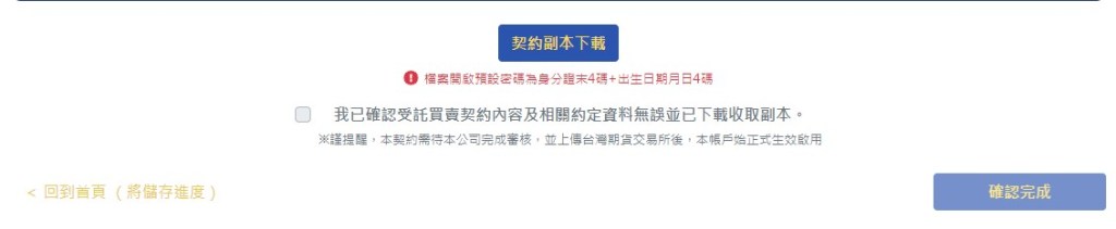 凱基期貨線上開戶Step16:填寫完畢後下載線上開戶副本,確認資料內容無誤後即可送出