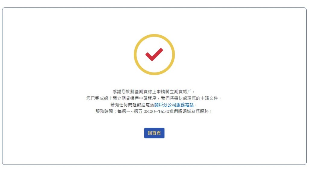凱基期貨線上開戶Step17:送出開戶資料後通知佳璇,佳璇會盡快和後台追蹤資料