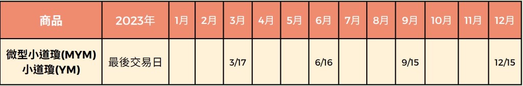 ◈2023年微型小道瓊期貨結算日