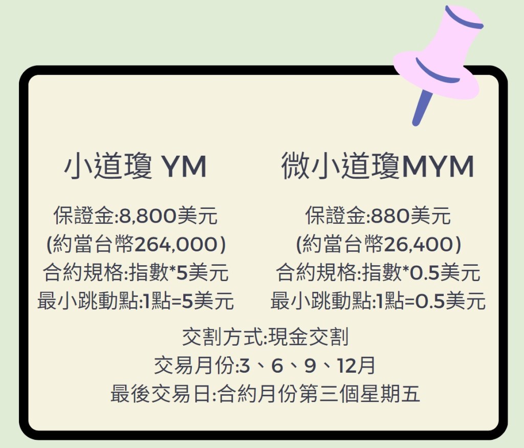 ◈微型小道瓊期貨合約規格